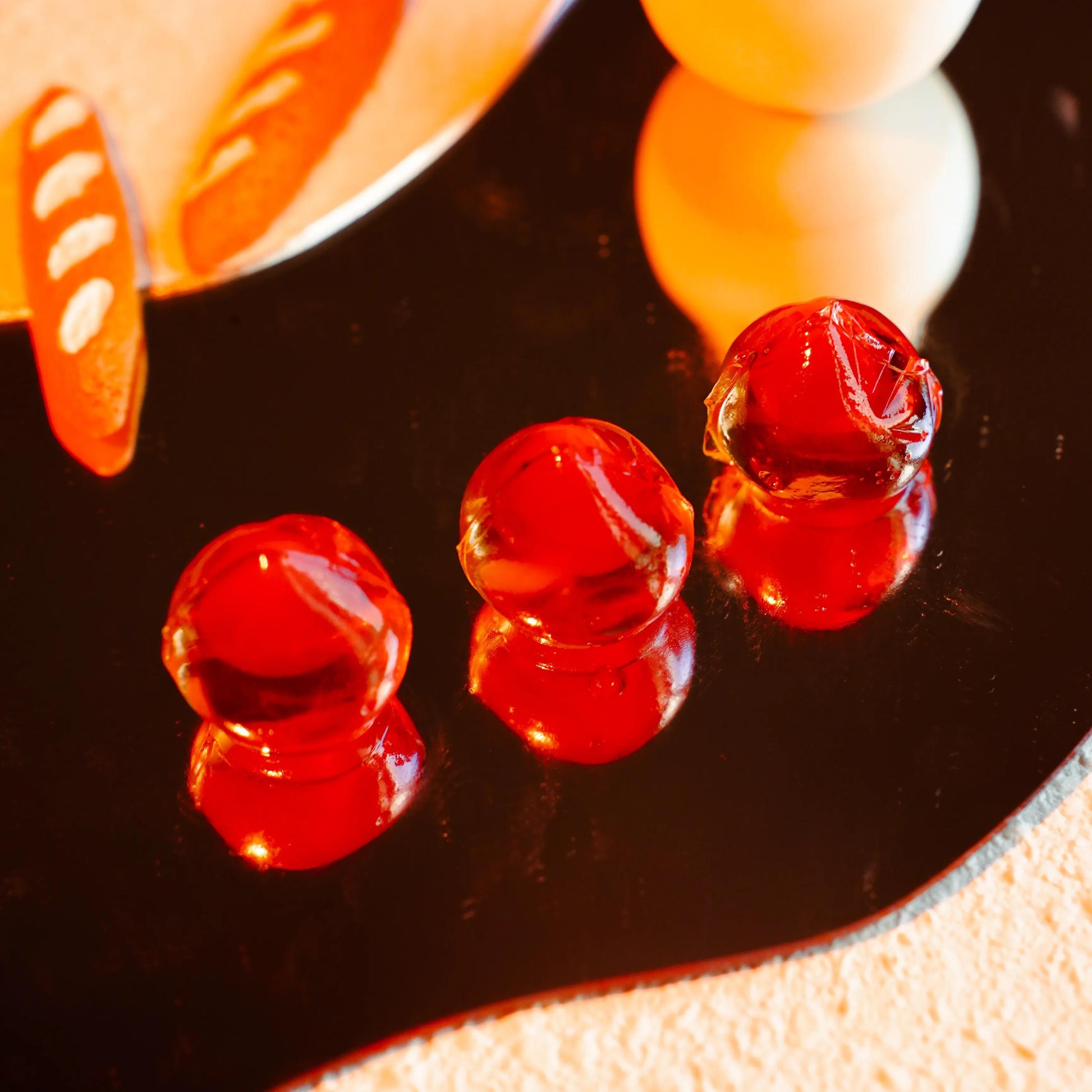 Mini peach-shaped, each one crystal clear and plump, full of chewy goodness