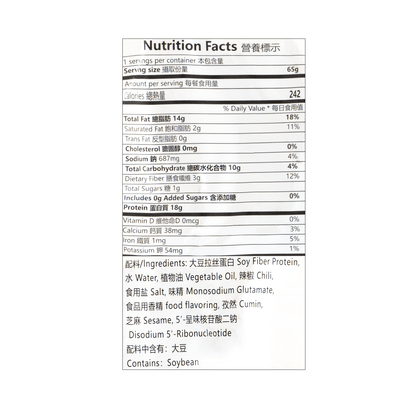 | Ingredients | Soybean, vegetable oil, pepper, edible salt, etc. |