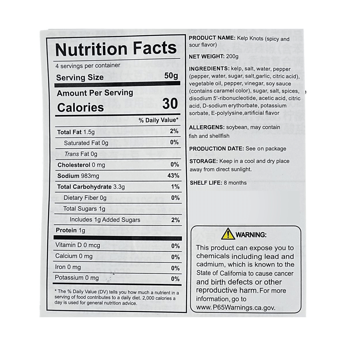 Kelp Knots,spicy and sour flavor,7.05 oz