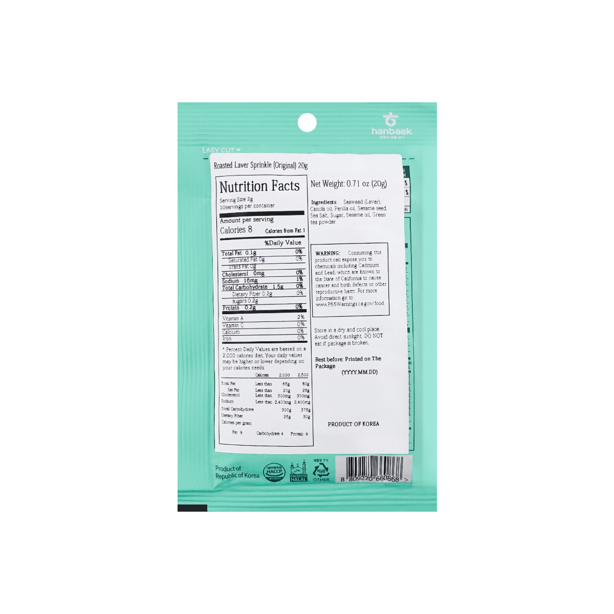 These Roasted Seaweed Sprinkles from MASTER HEE'S are versatile, healthy, and delicious. Made with the finest quality Korean seaweed, all-natural seasonings, and no additives, preservatives, or artificial pigments, they can be enjoyed on their own as a tasty snack, or along with your favorite dishes to add a burst of umami flavor.