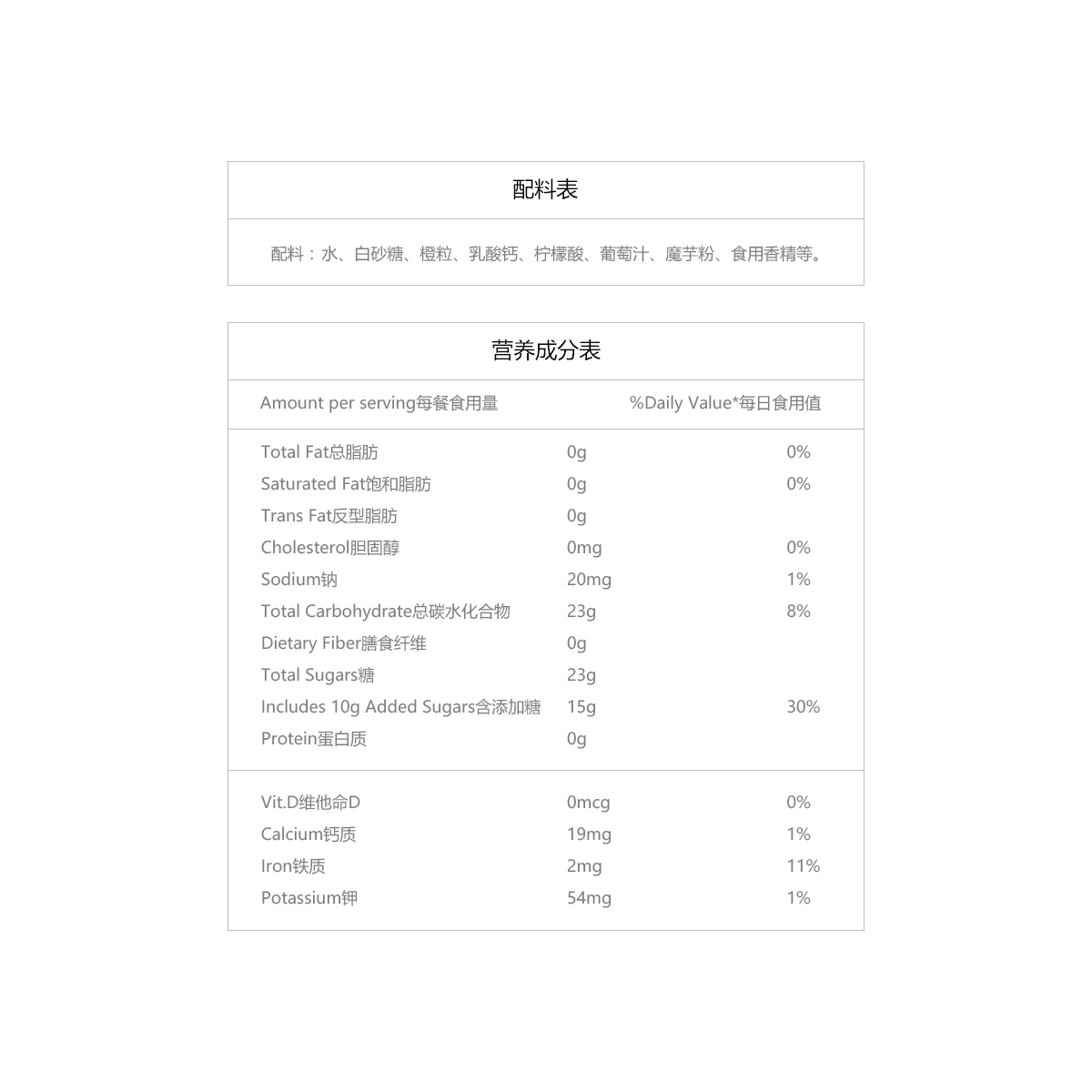 | Ingredients | Sugar, coconut, konjac, orange. |