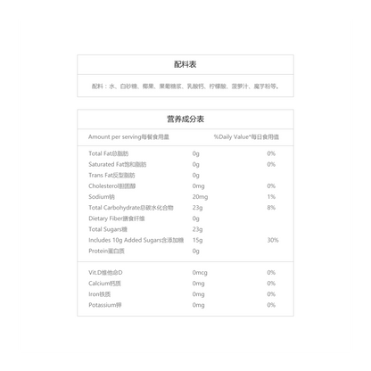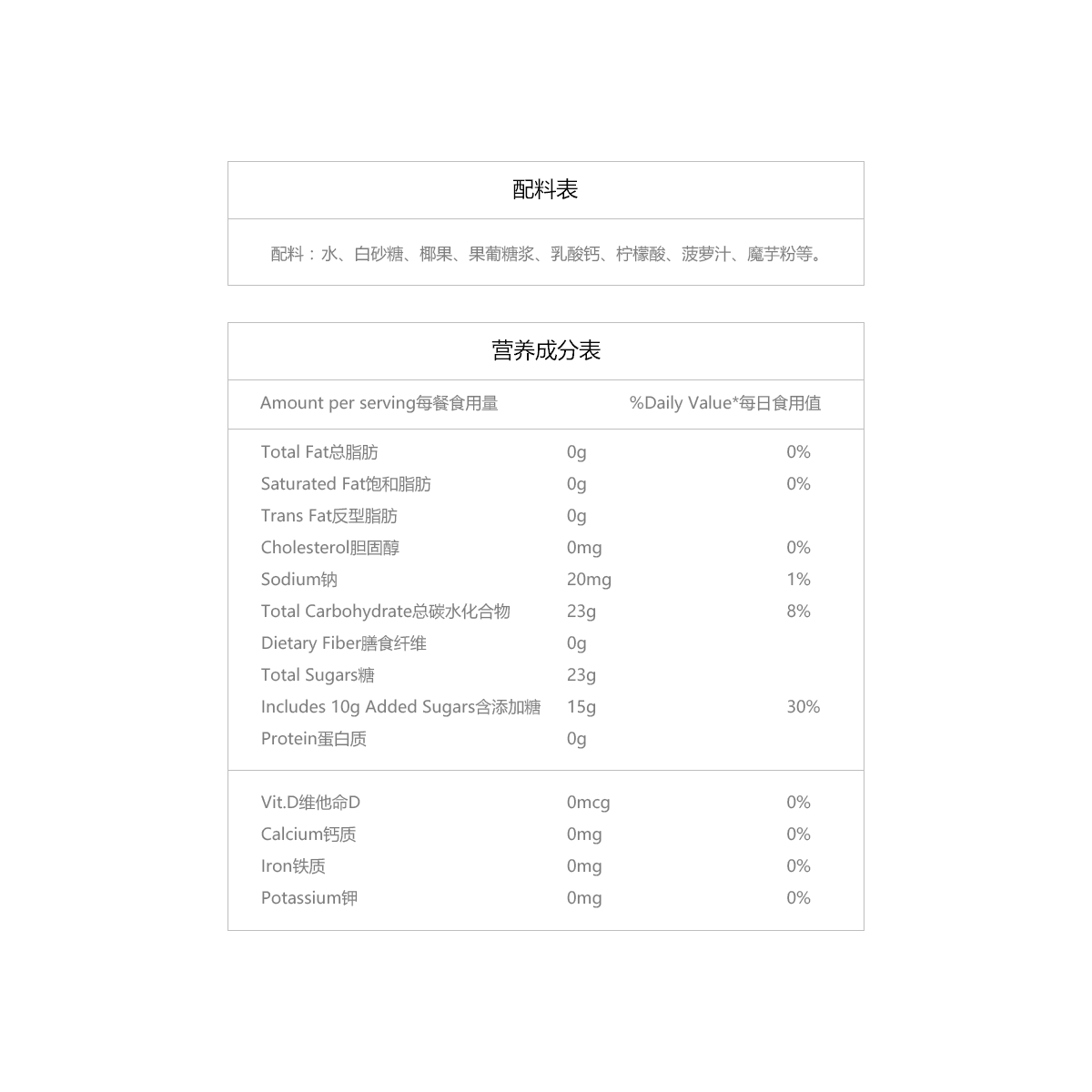 | Ingredients | Sugar, coconut, konjac, pineapple juice. |